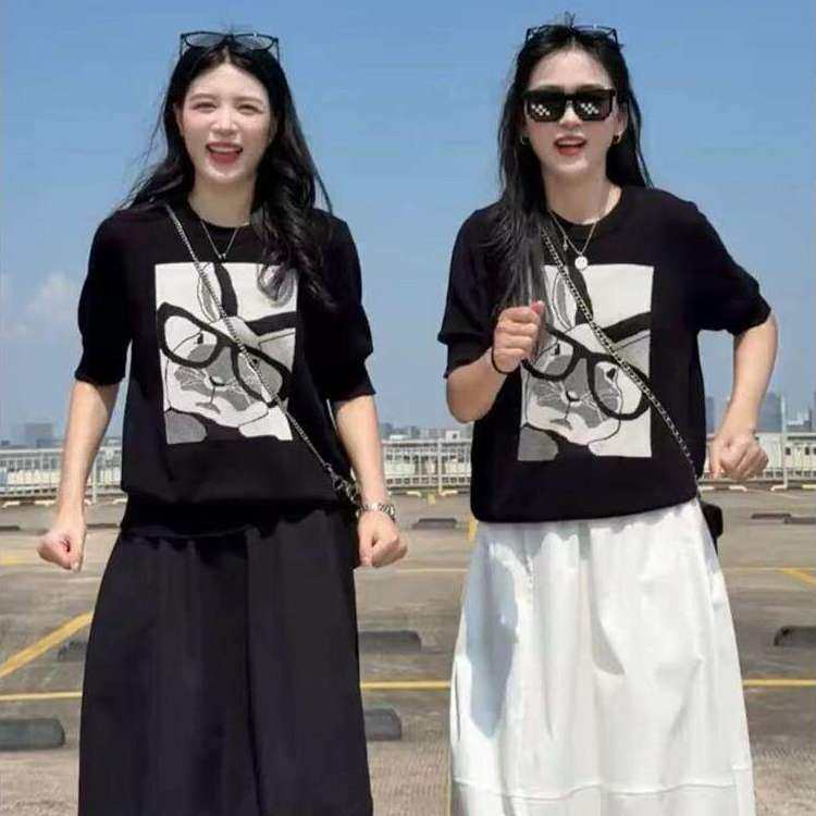 欧洲站韩版卡通兔子短袖T恤女25新款早秋薄款冰丝针织衫体恤上衣