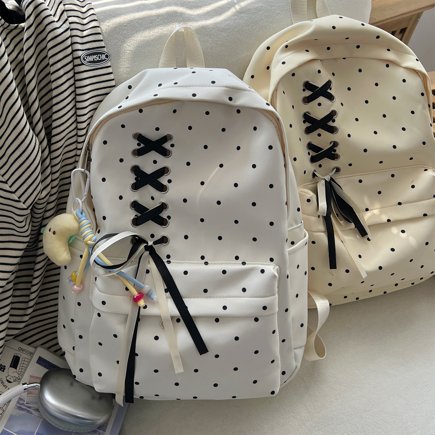 高颜值波点少女初中生书包女 蝴蝶结大容量ins小众校园轻便双肩包