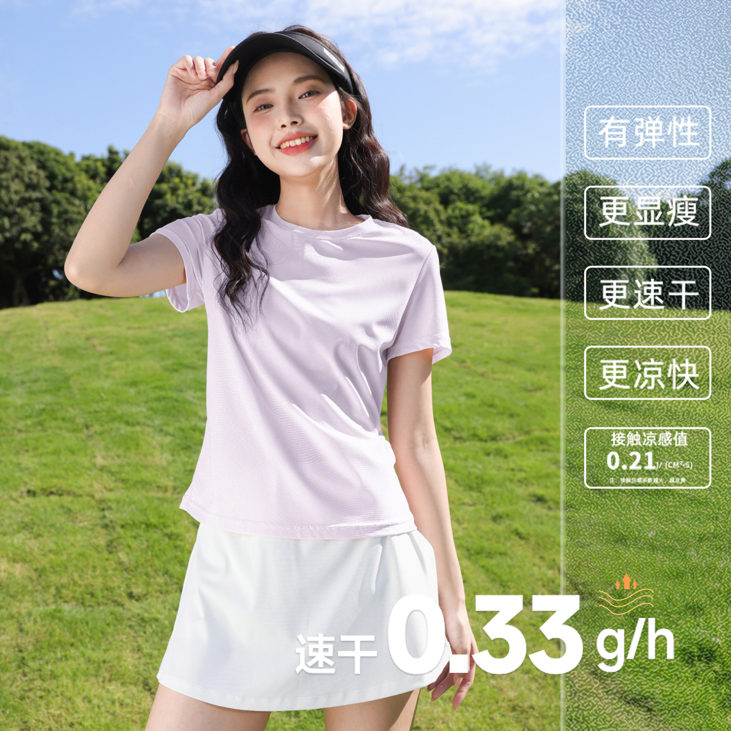 班尼路紫色速干冰感修身T恤美式复古休闲正肩短袖纯色凉感上衣女Q