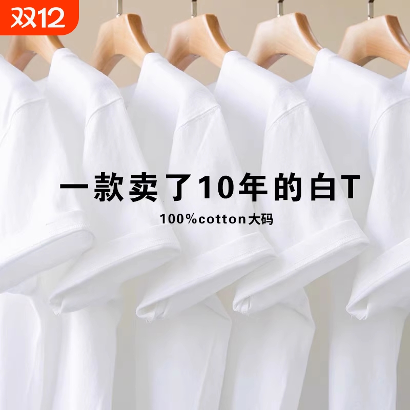 新疆棉500g重磅纯棉短袖t恤白色宽松打底衫大码内搭加厚男女高级