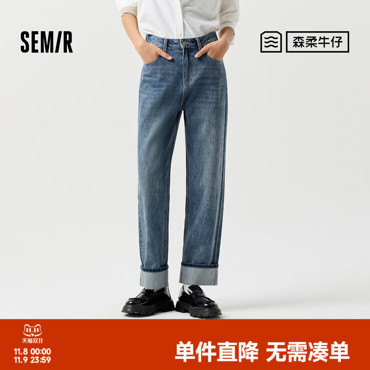 森柔牛仔|森马牛仔裤女翻边直筒裤女生潮酷春舒适九分裤潮流复古