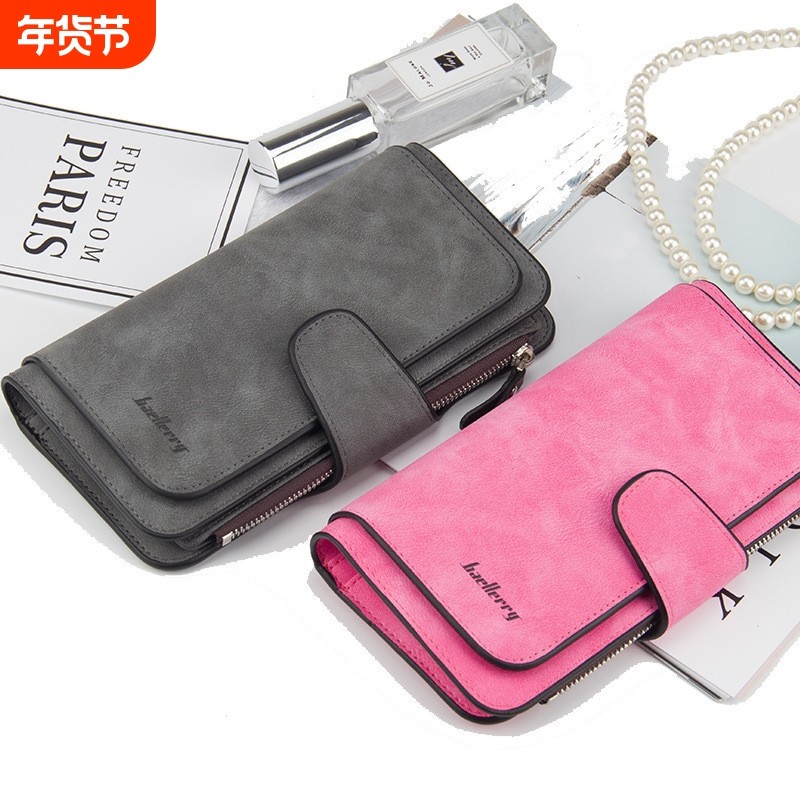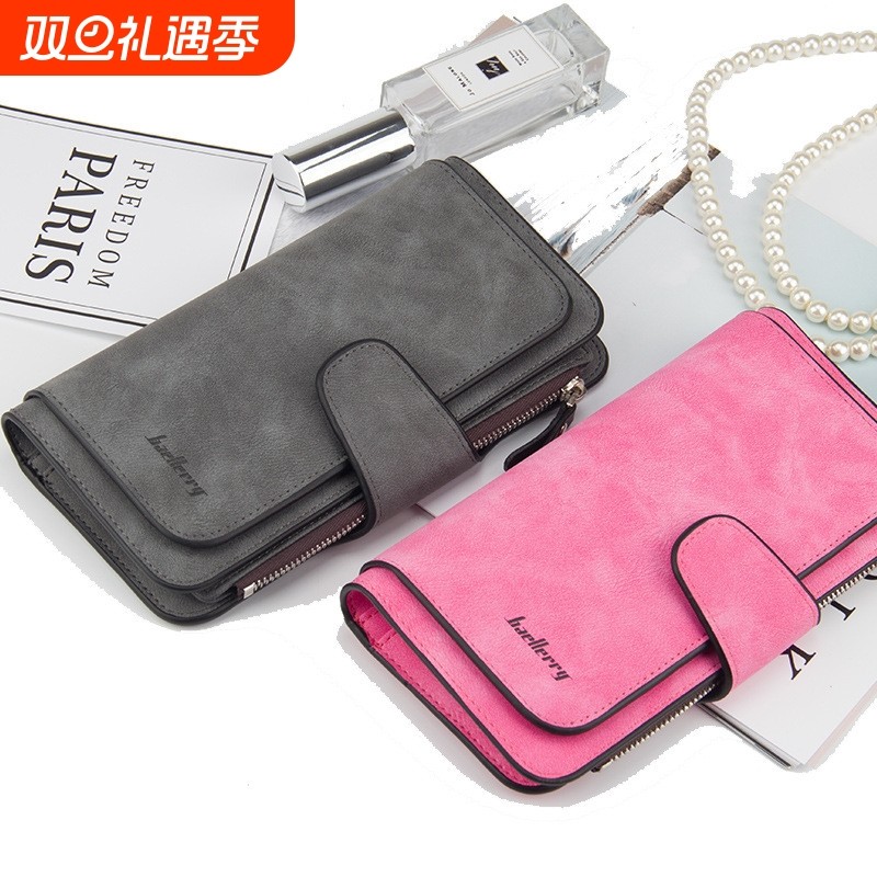 钱包女长款卡包女士多卡位一体三折钱夹女款大容量磨砂搭扣多功能