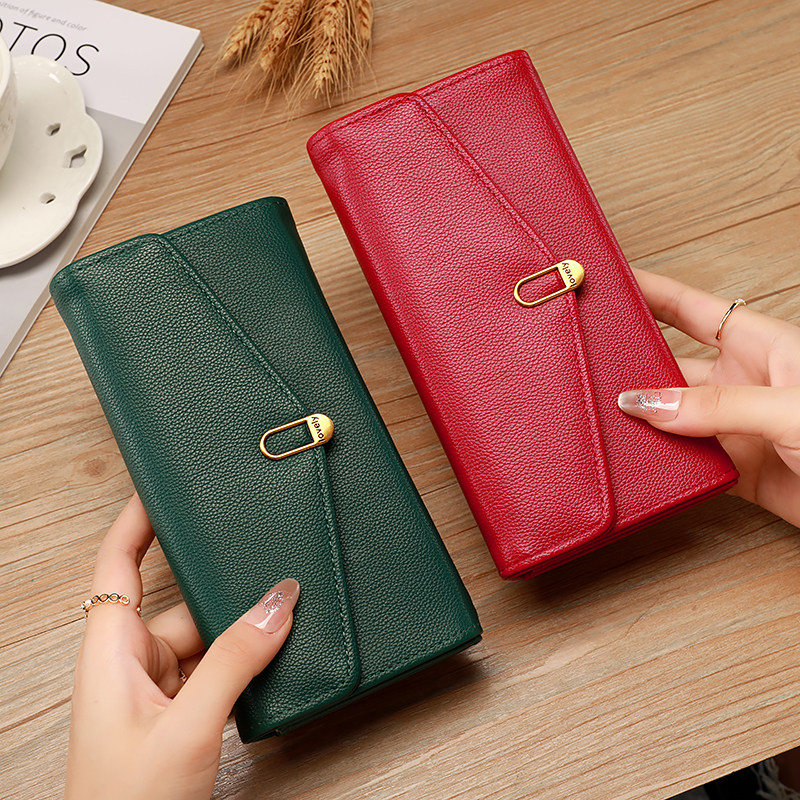 新款钱包多功能搭扣式女款手机包爆款大容量纯色休闲大气长款钱夹