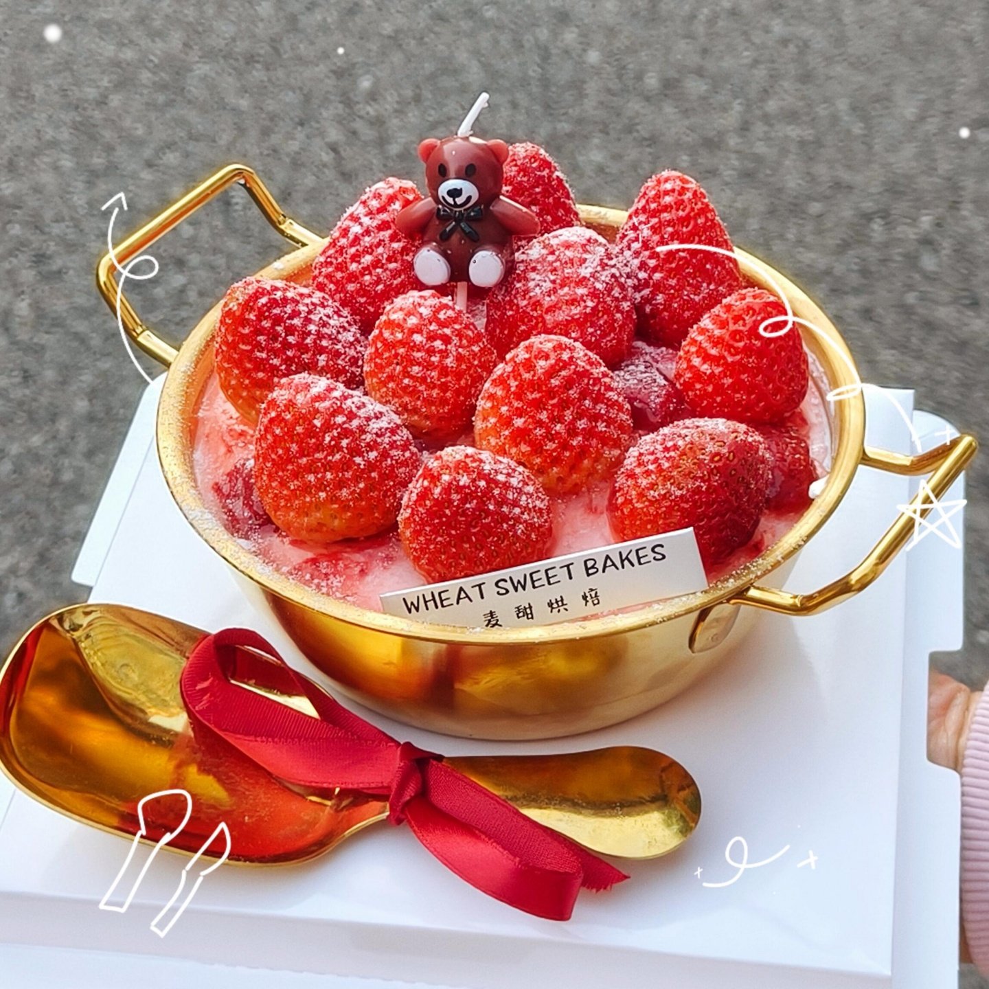 2026新年跨年草莓碗金色草莓盆蛋糕装饰插牌马年草莓甜品碗蛋糕盆