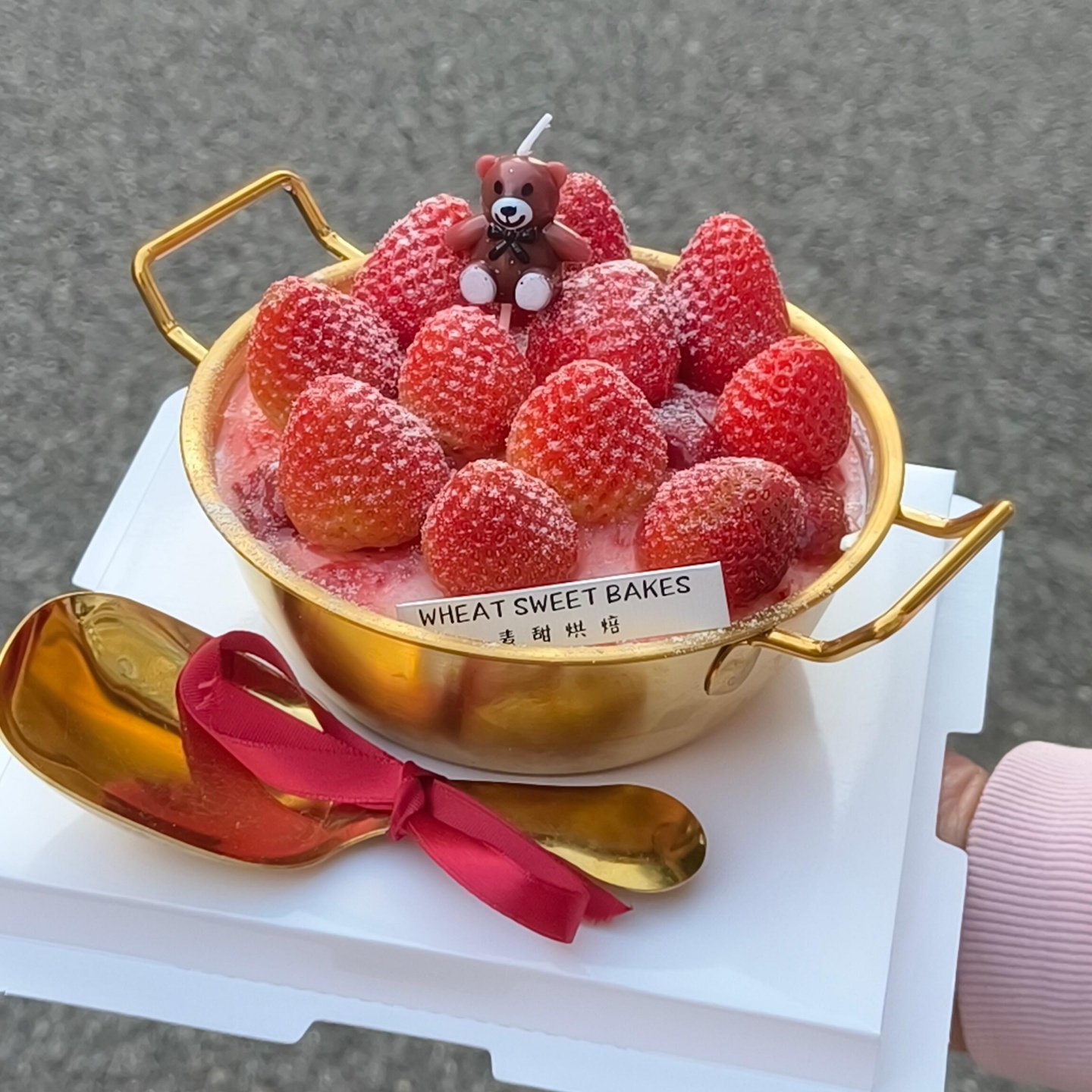 网红圣诞节新年金色草莓蛋糕盆蛋糕装饰不锈钢锅草莓蛋糕碗甜品盆