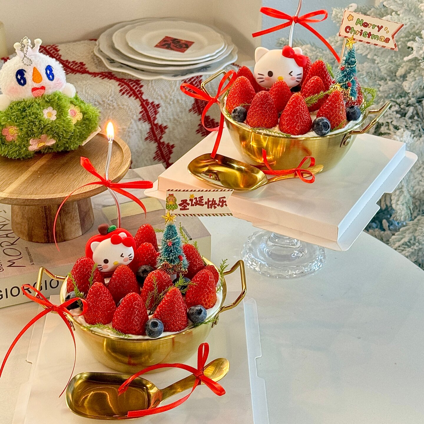 2026网红圣诞节新年金色草莓碗kt猫蛋糕装饰草莓蛋糕盆不锈钢烘焙