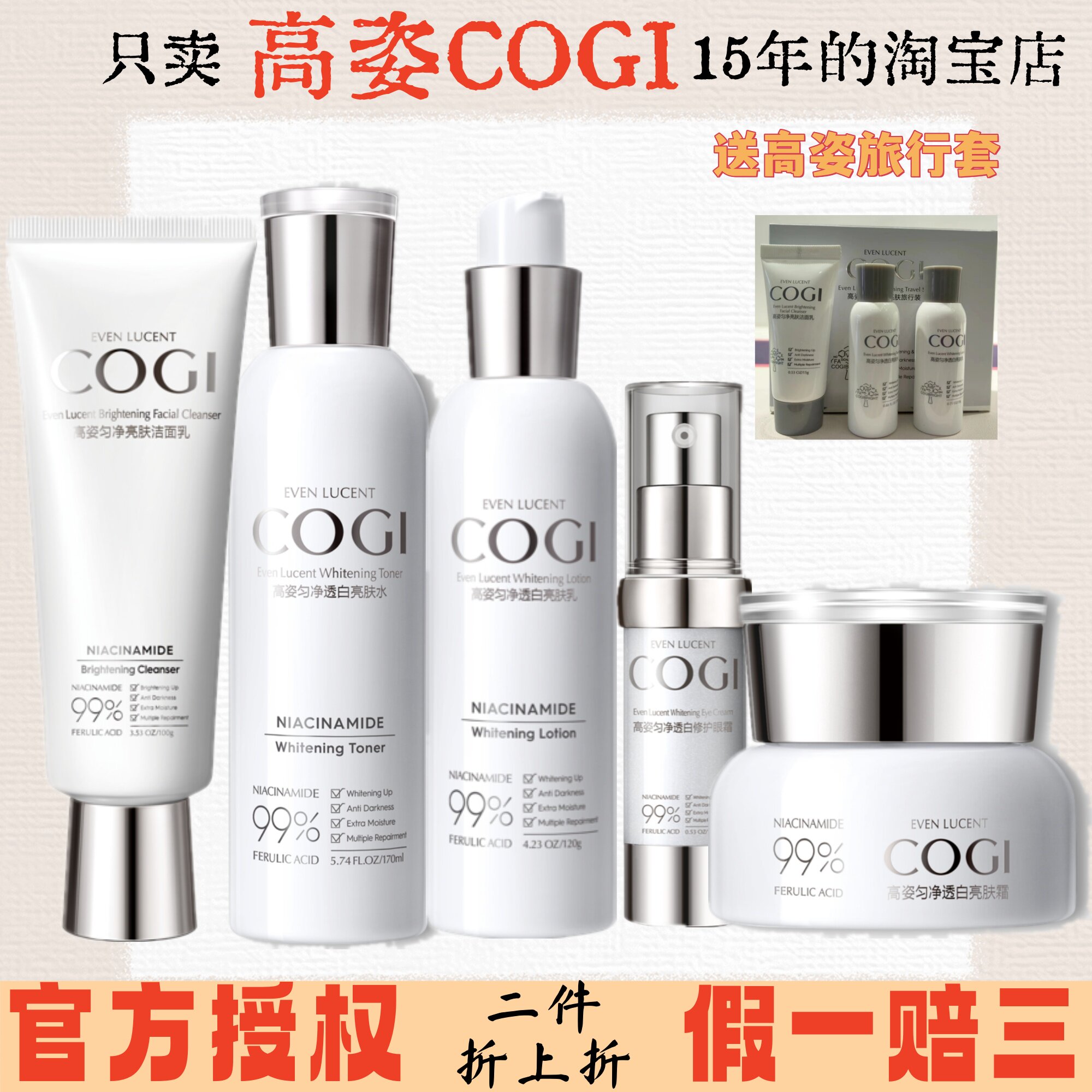 高姿99焕白亮肤水乳套盒大白水170ml美白补水祛黄化妆品正品爽肤
