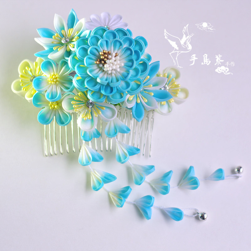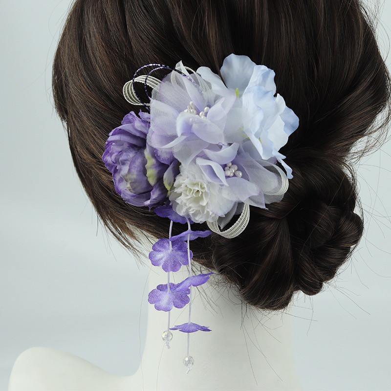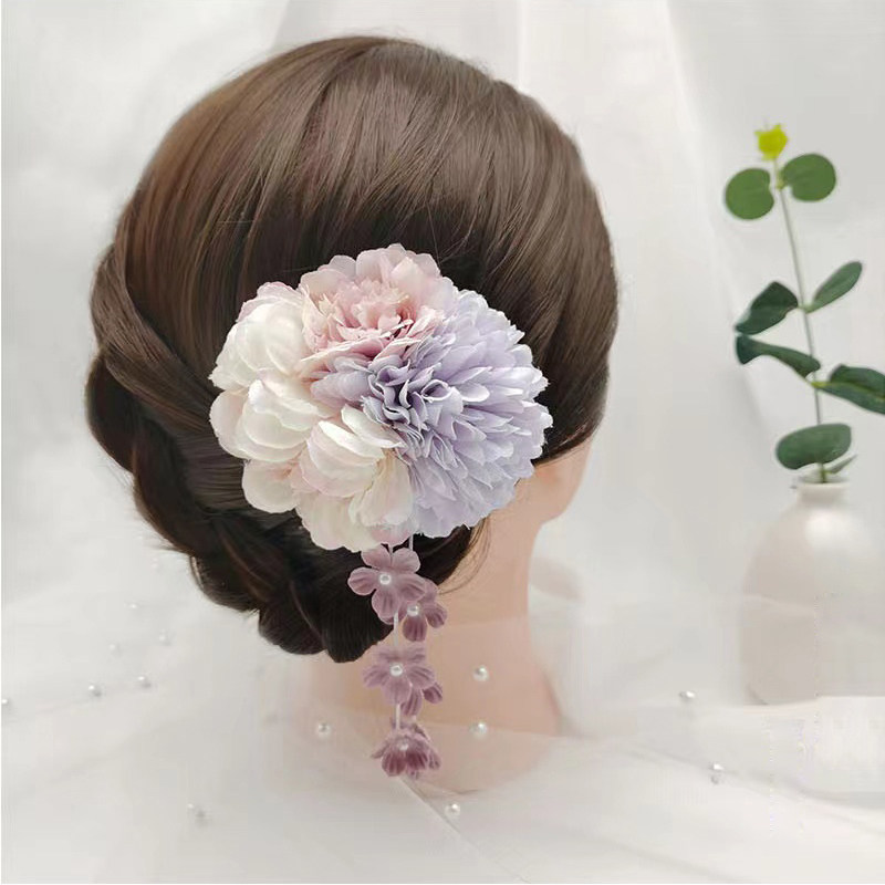 绣球花朵流苏发饰和风日系和服头饰古风汉服后压发夹旅游拍照边夹