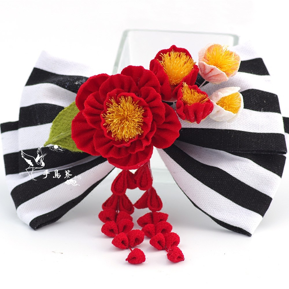 日本和服浴衣发饰/头饰/ 大蝴蝶结 黑白条纹 山茶 牡丹 kc头饰