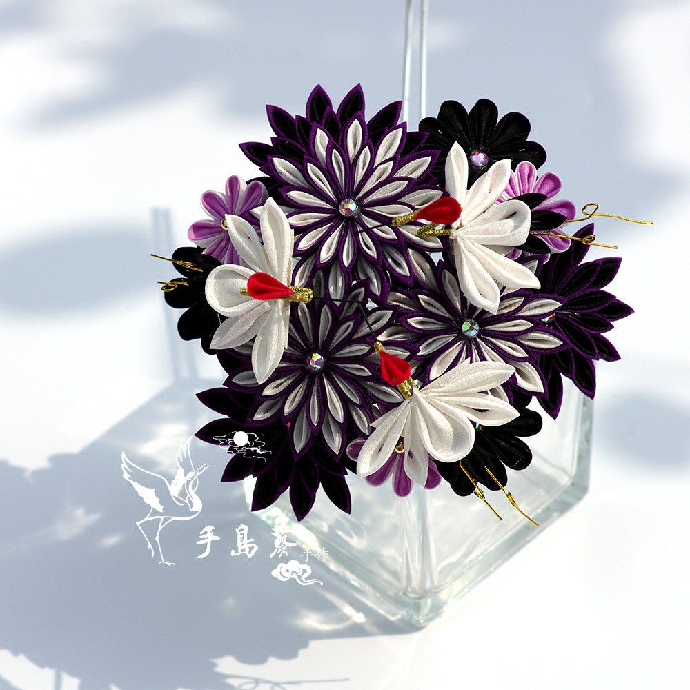 日本和服浴衣发饰/头饰/ 大蝴蝶结 山茶 黑灰色系 牡丹 kc头饰