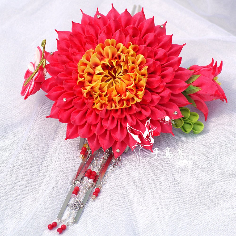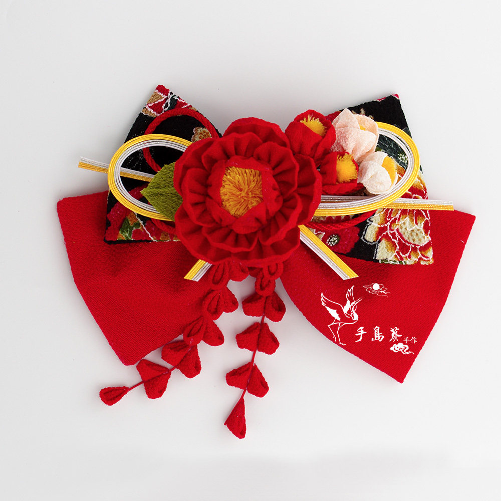 日本和服浴衣发饰/头饰/ 大蝴蝶结 山茶 黑红撞色 牡丹 kc头饰