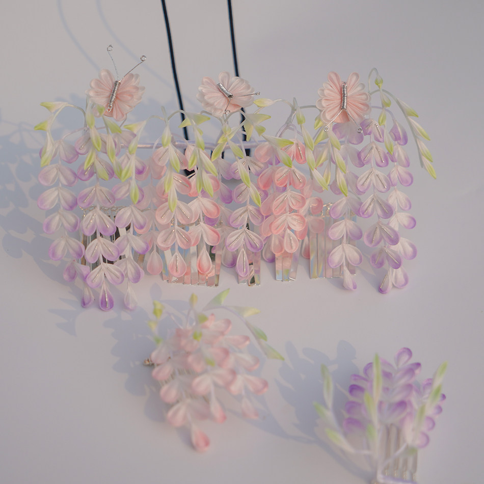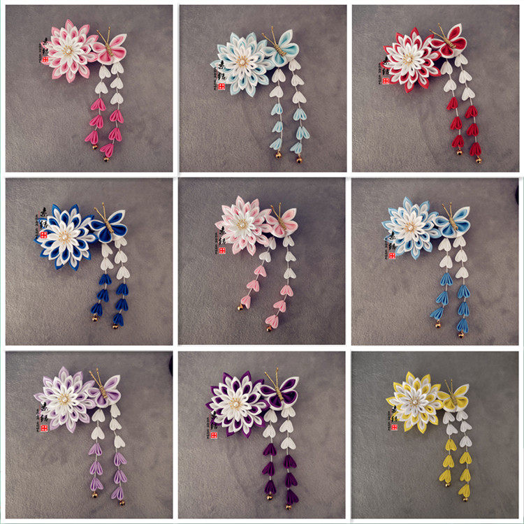 满包邮现货和风秀禾发饰樱花菊发夹边夹蝴蝶和服浴衣头饰COS饰品