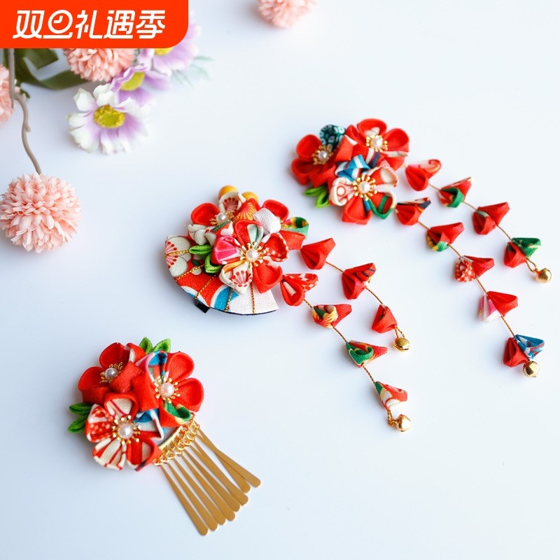新款日式樱花流苏饰品头饰和风头饰和服发饰日系浴衣扇子链条边夹