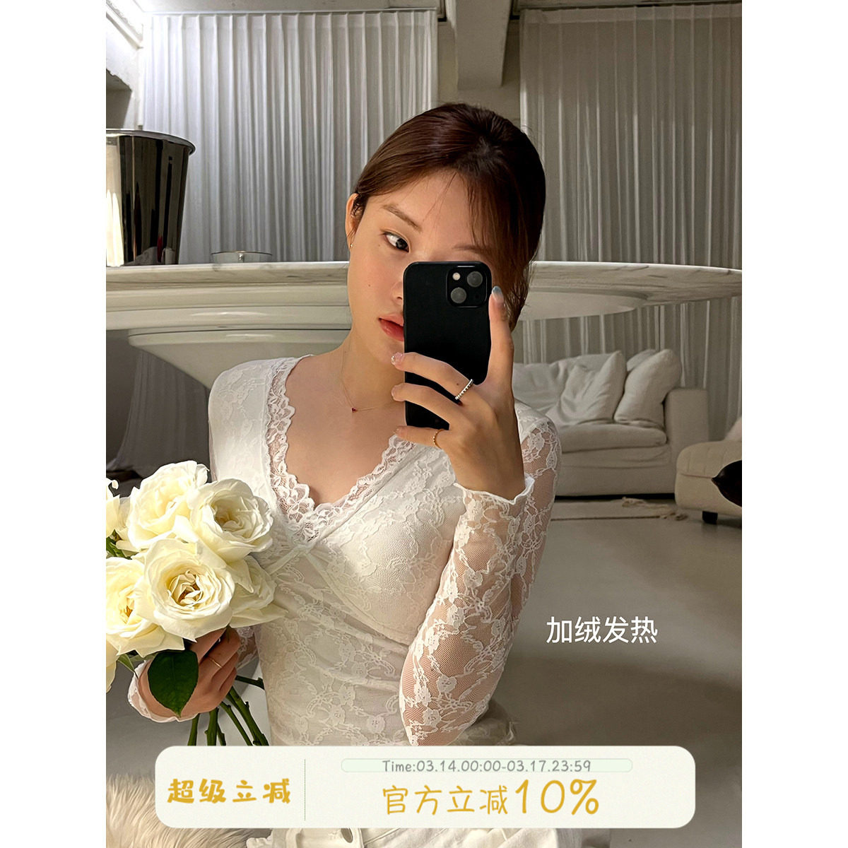 - 保暖内衣女性感蕾丝