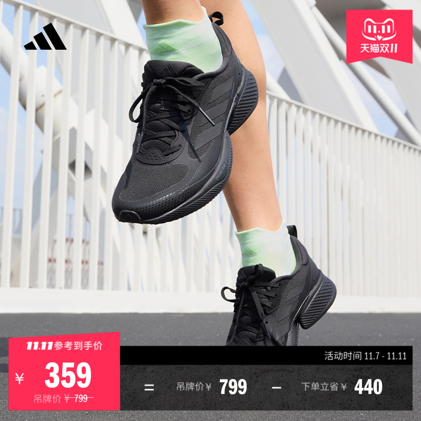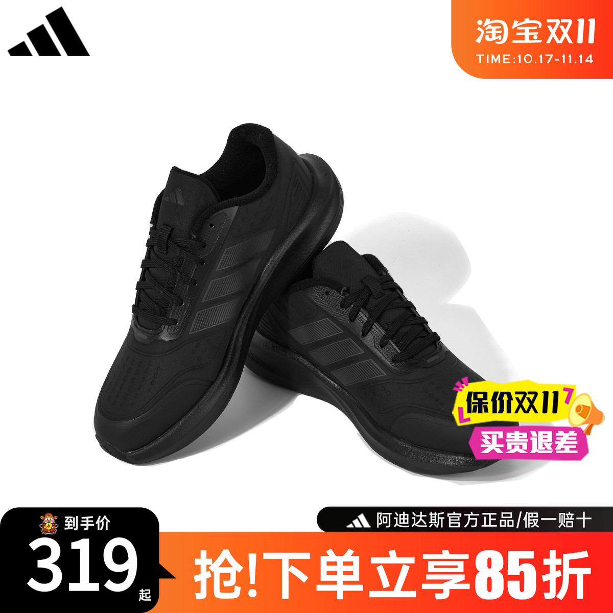 阿迪达斯男鞋2025秋季新款轻便防滑体测运动鞋透气网面黑色跑步鞋