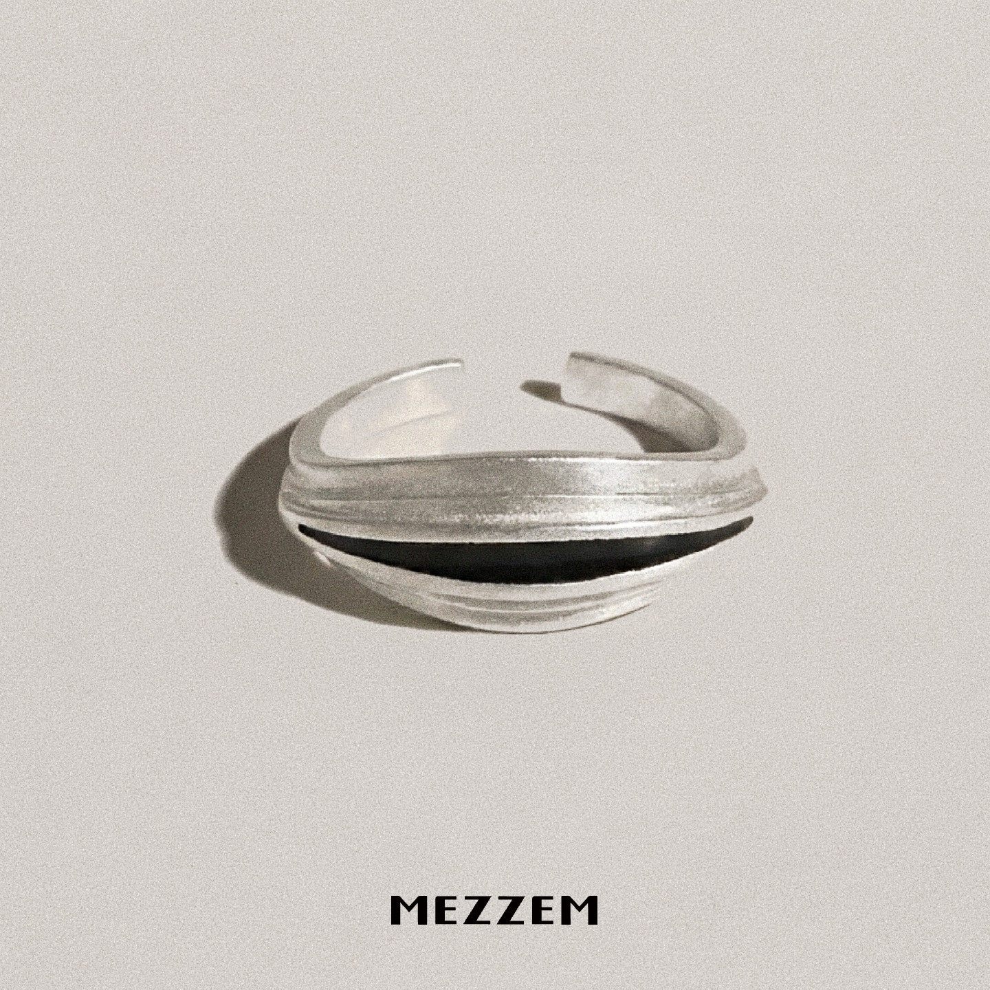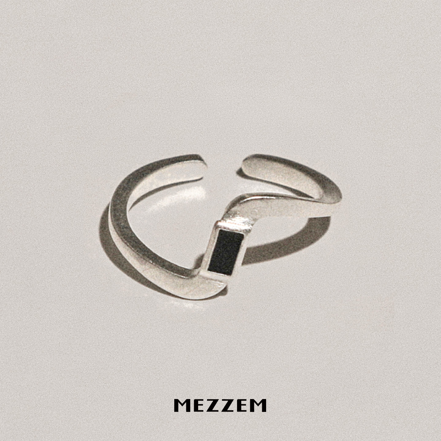 MEZZEM x LOPHNE 复古前卫黑玛瑙开口戒指银原创小众设计中性潮流