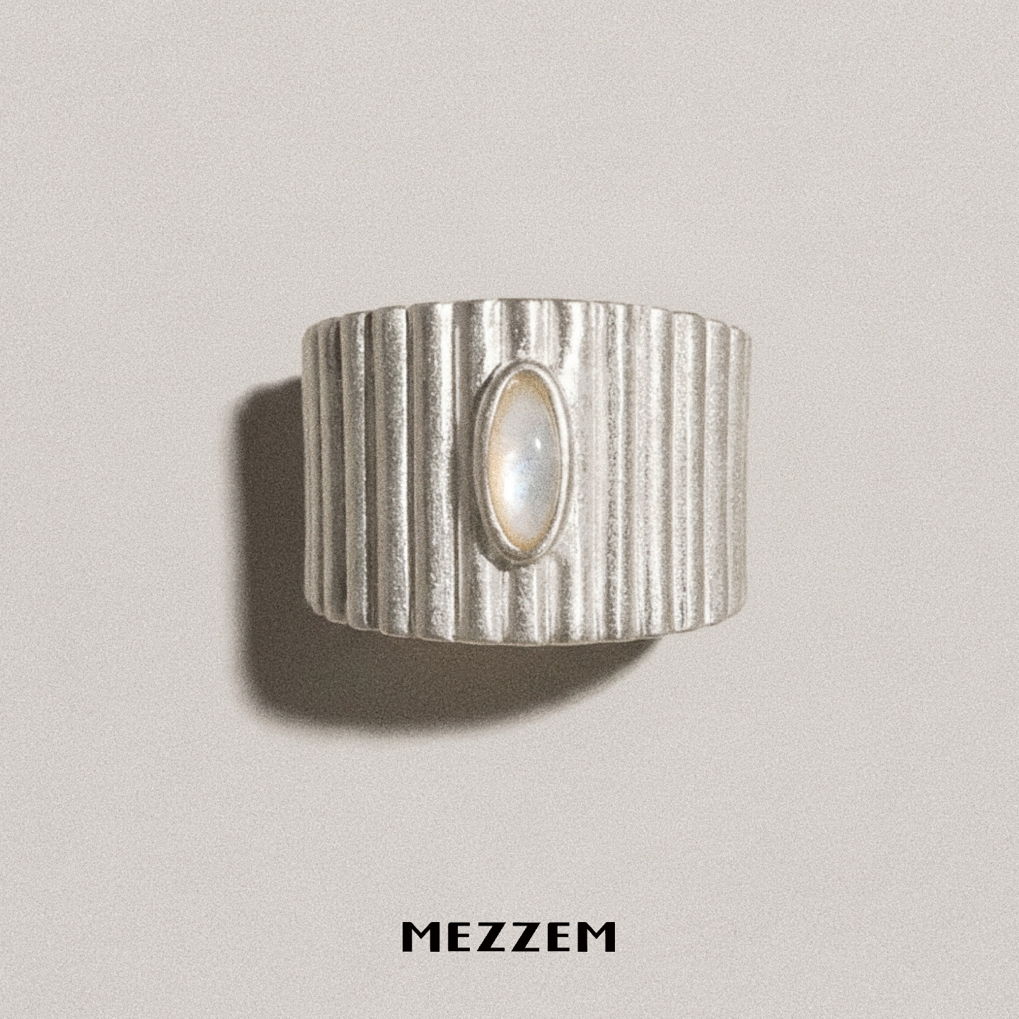 MEZZEM时尚中古条纹玛瑙宽戒指银原创简约开口小众中性潮流高级感