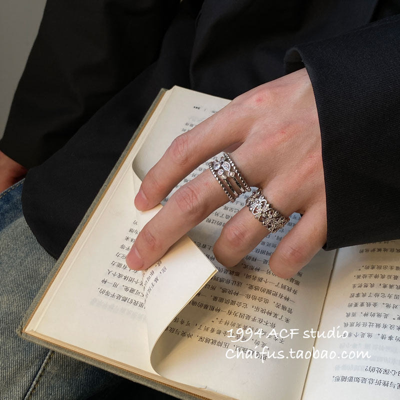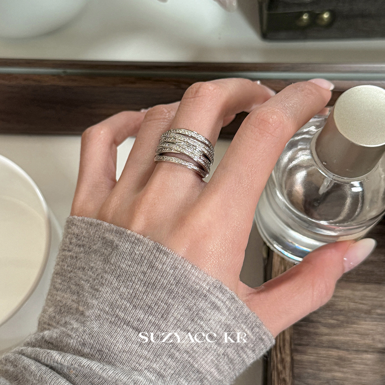 suzyacc kr轻奢精致百搭多层合成锆石戒指中性风简约高级食指戒