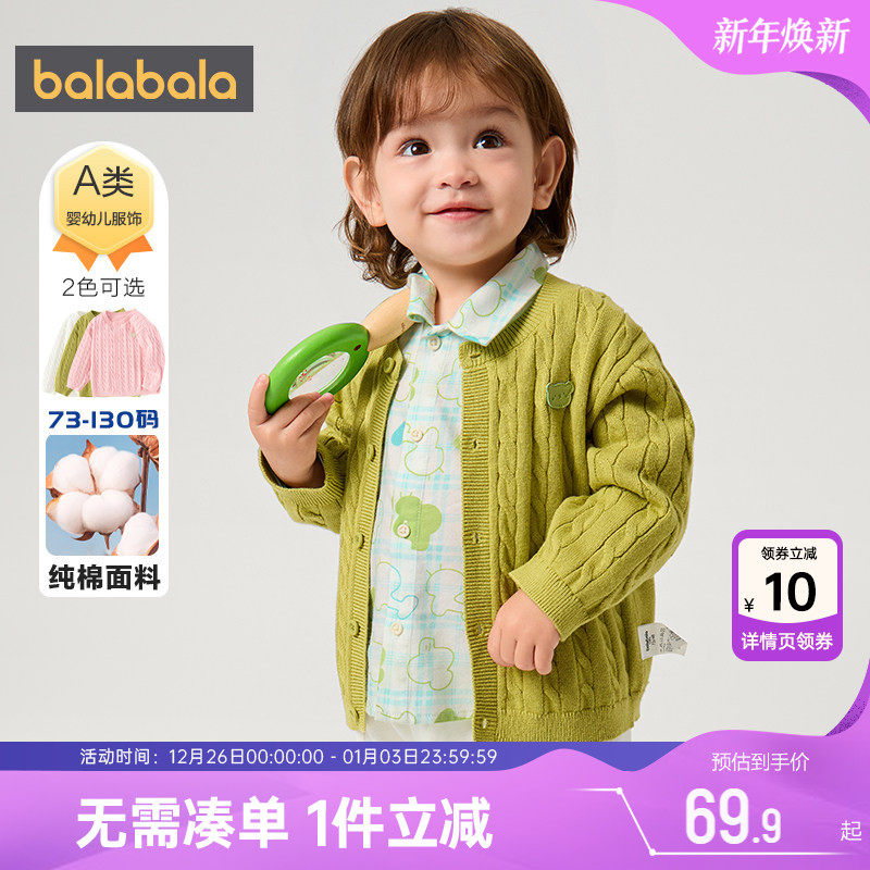 巴拉巴拉宝宝针织衫外套婴儿开衫毛衣春秋款童装男童女童纯棉上衣