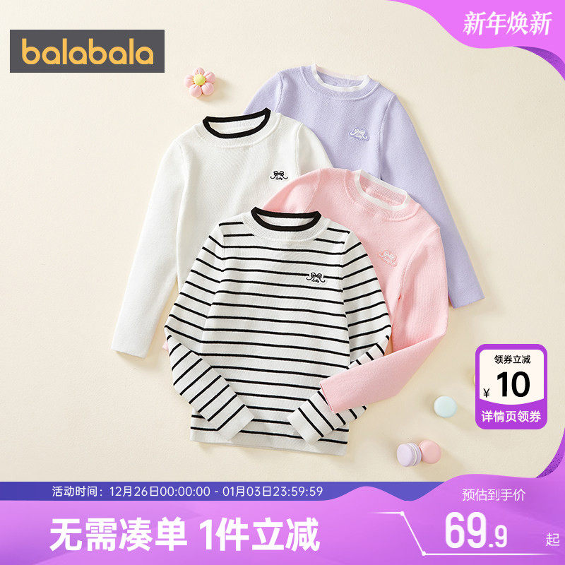 巴拉巴拉女童针织衫中大童毛衣春秋款童装儿童打底衫宝宝套头上衣