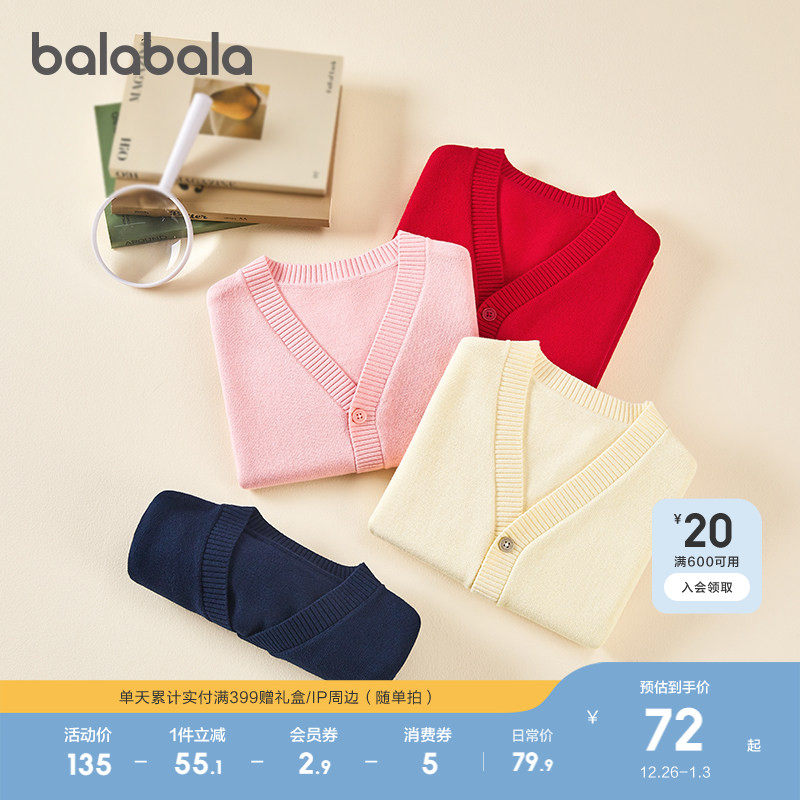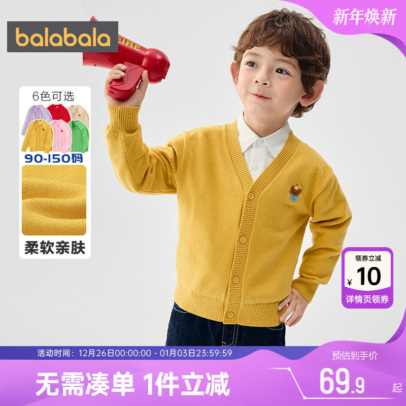 巴拉巴拉童装女童毛衣儿童毛衫2025春秋款男童针织开衫百搭毛衫潮