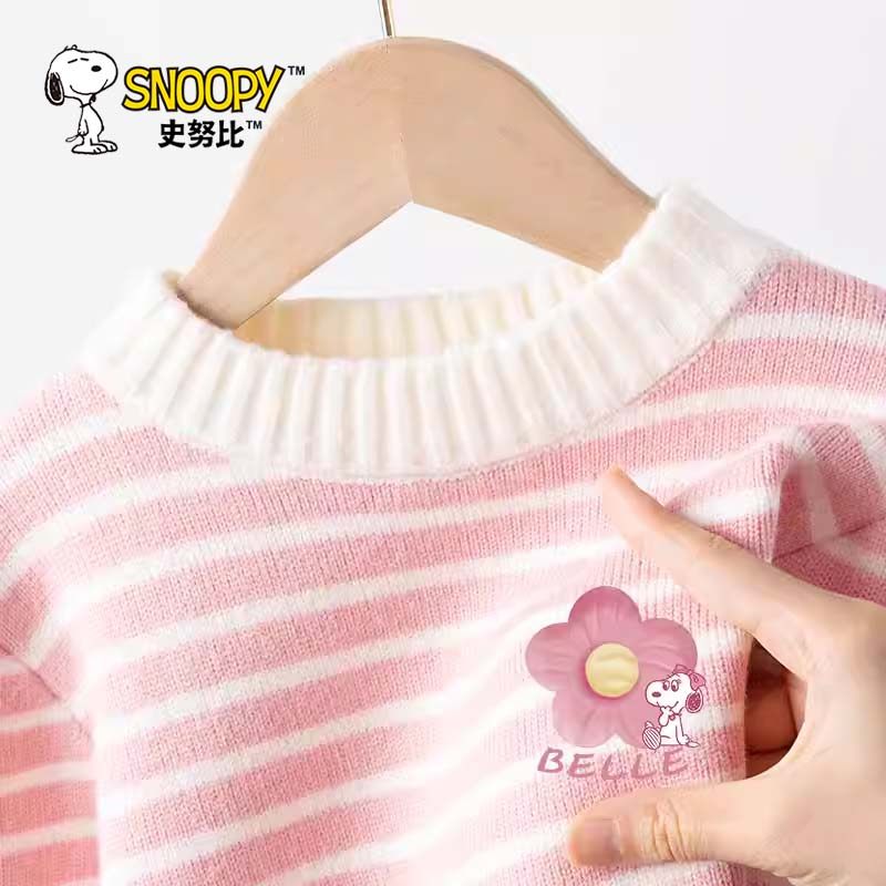 史努比女童毛衣春秋款2025新款儿童粉色条纹针织衫女大童秋装上衣