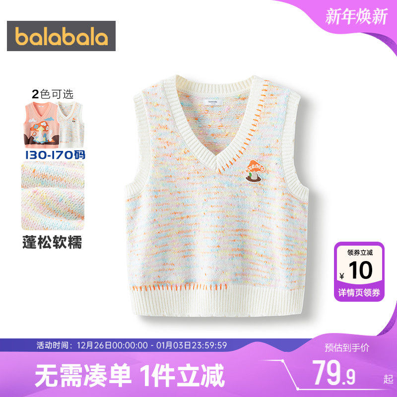 巴拉巴拉女童毛衣马甲中大童针织衫小背心春秋款童装儿童洋气上衣