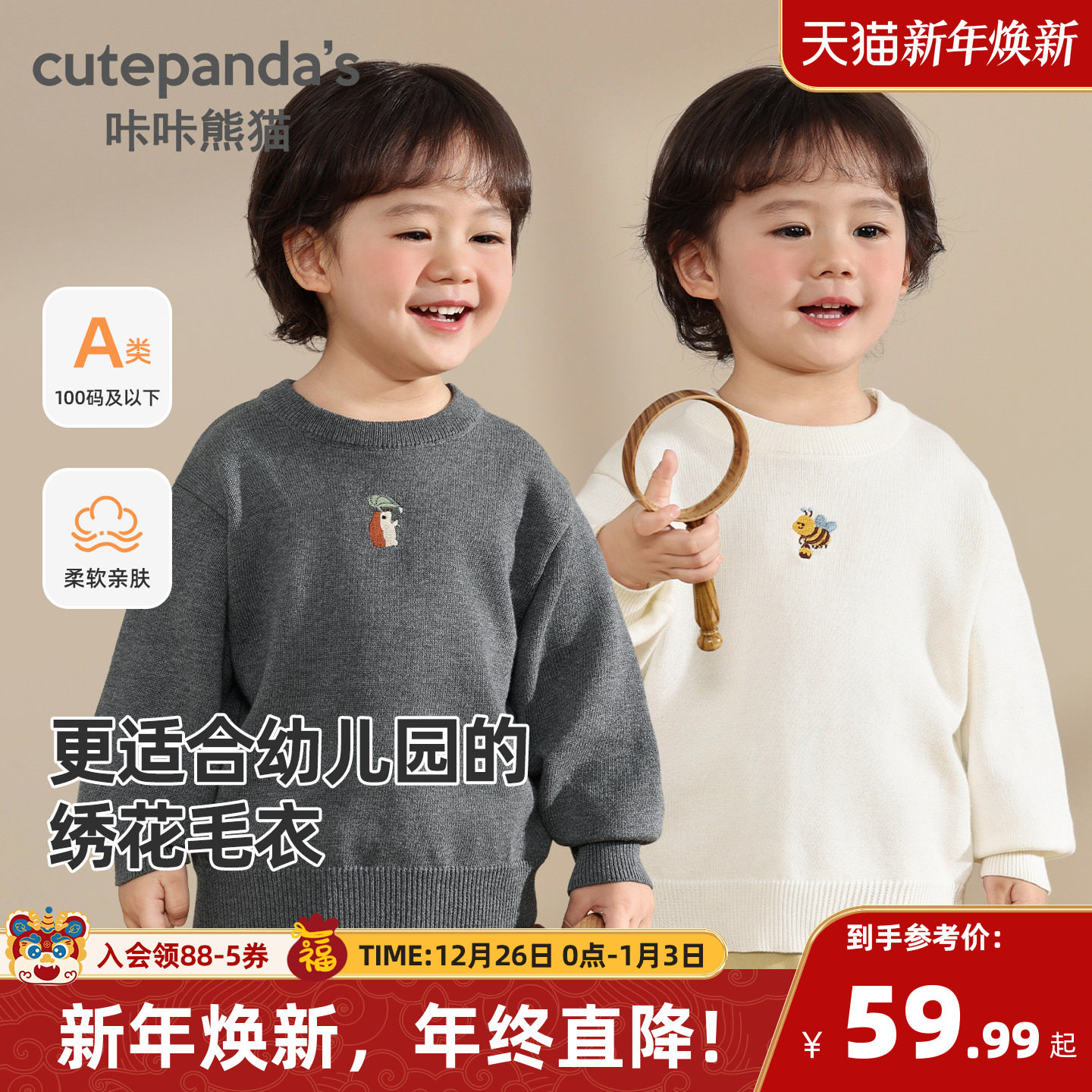 咔咔熊猫宝宝纯棉毛衣秋冬儿童简约毛线衣秋装男童女童针织衫秋款