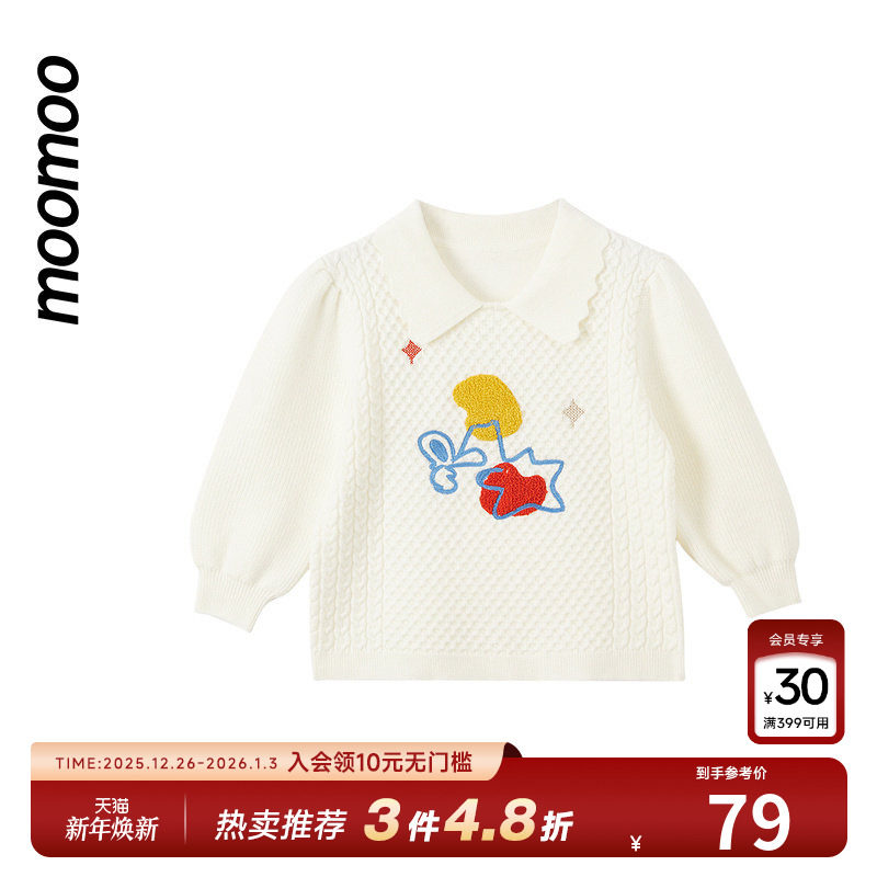 美特斯邦威童装女童毛衣秋款翻领泡泡袖原创时尚绣花套头针织毛衣