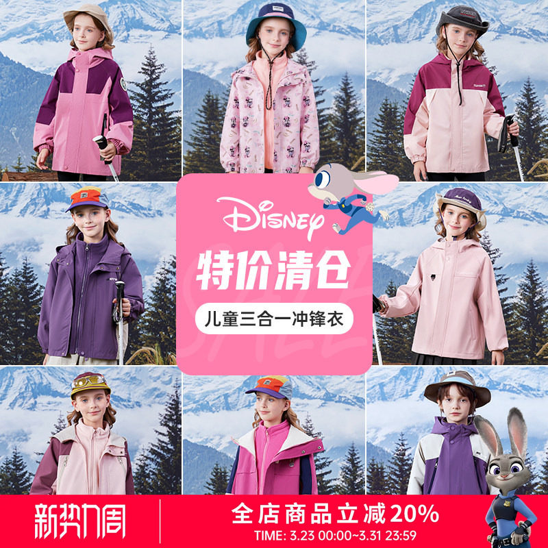 【特价清仓】迪士尼儿童三合一冲锋衣套装男女童保暖内胆御寒外套