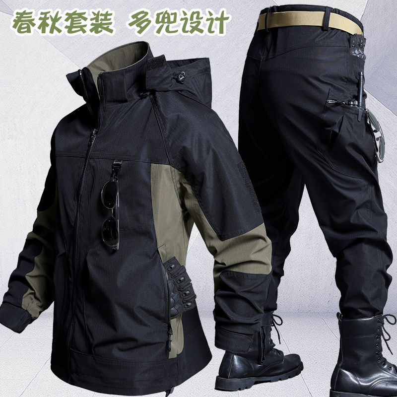 户外新款高端战术软壳冲锋衣男女三合一加绒防风多口袋登山服套装