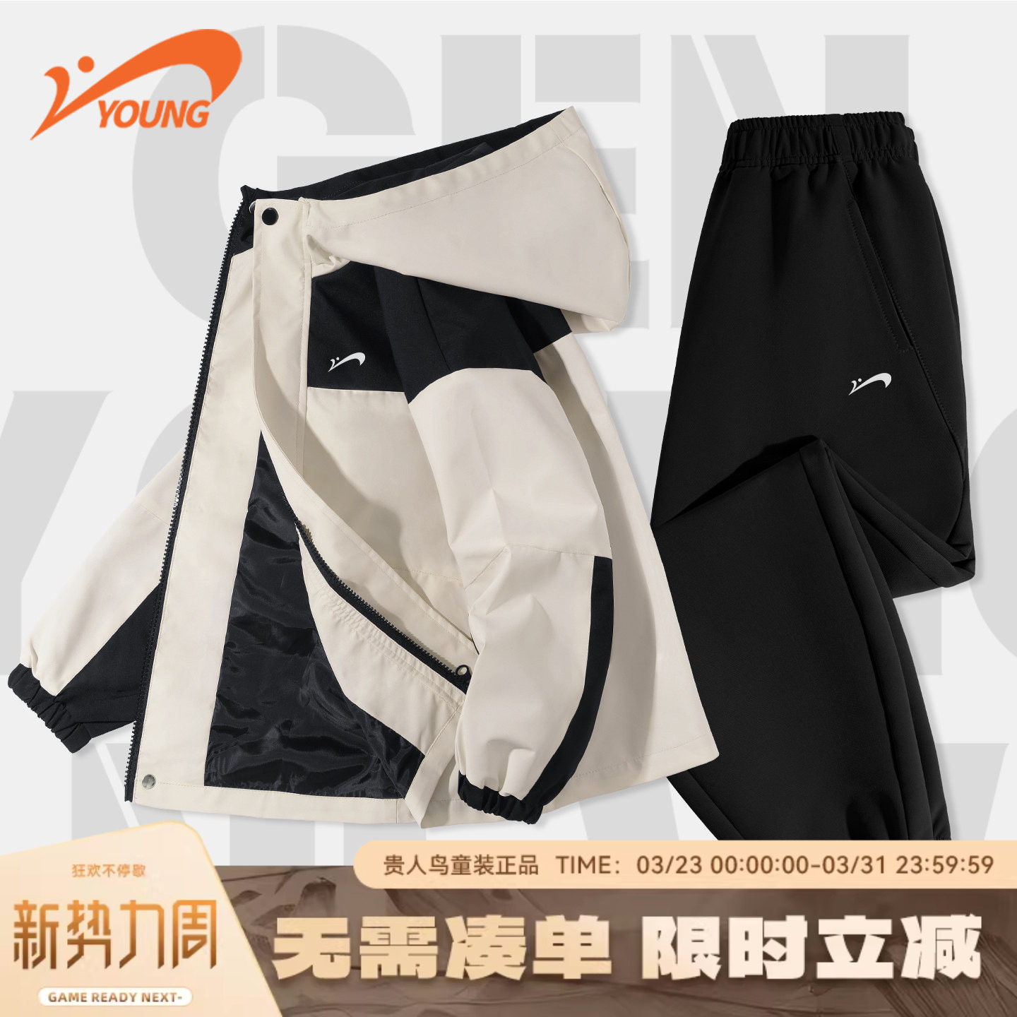 贵人鸟童装儿童冲锋衣三合一可拆卸2026新款防风套装衣服男童外套