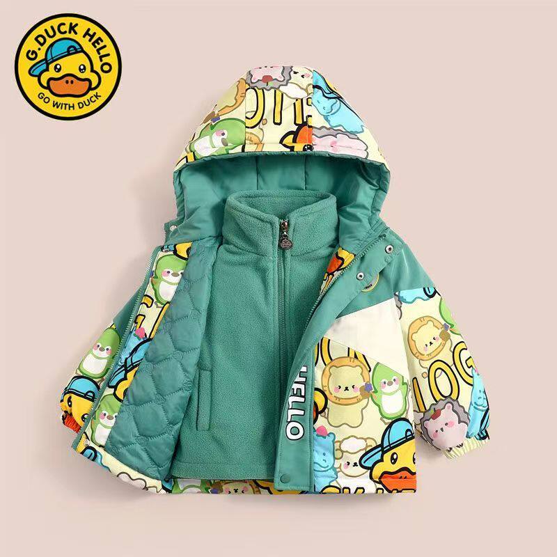 小黄鸭儿童冲锋衣三合一外套秋冬新款男童女童两件套宝宝卡通套装