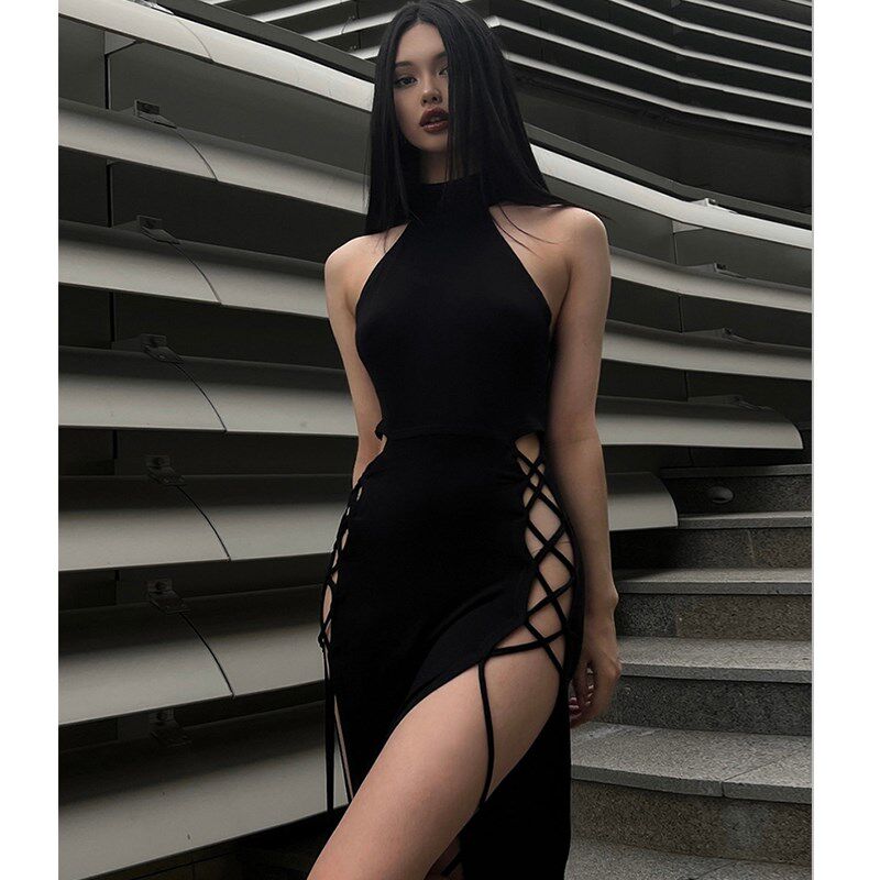 速发亚比感欲性纯妹色夜店连衣裙亚文化系带辣黑长裙哥特风情种裙