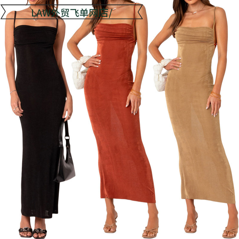 亚马逊热销跨境女装欧美夏季性感吊带褶皱包臀夜店连衣裙8602