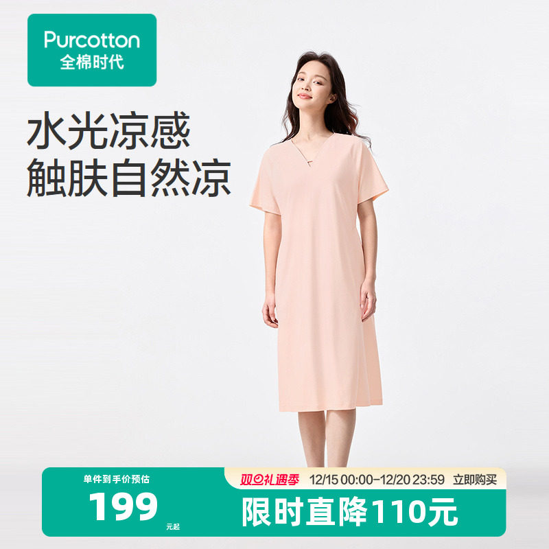 全棉时代睡裙女水光棉短袖夏季凉感女士睡衣家居裙夏季短裙居家裙