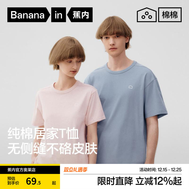 蕉内棉棉301Home男女士居家短袖T恤春夏款情侣纯棉纯色睡衣家居服