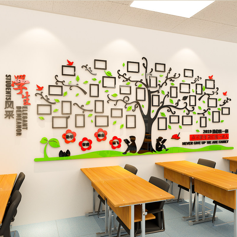 班级文化墙积极梦想树墙贴开学教室布置装饰小学初中学习励志标语