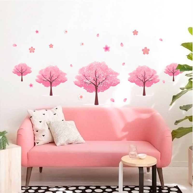 简约清新卧室装饰少女心浪漫樱花树墙贴创意自粘防水pvc材质墙纸