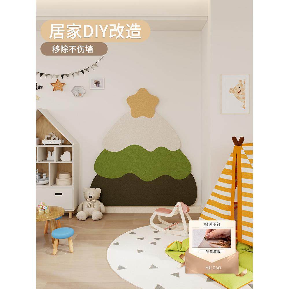 毛毡板毛毡墙贴儿童房间法式奶油风蛋糕树墙贴3d立体免打孔照片墙防撞护墙板软木板创意客厅玄关DIY装饰墙面