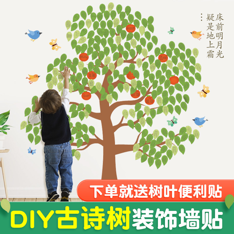 古诗树墙贴diy创意贴纸便签贴留言墙儿童大树爱心墙装饰手工贴画