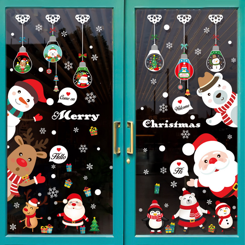 圣诞装饰贴纸2022元旦场景布置窗贴店铺玻璃门雪花圣诞老人树墙贴