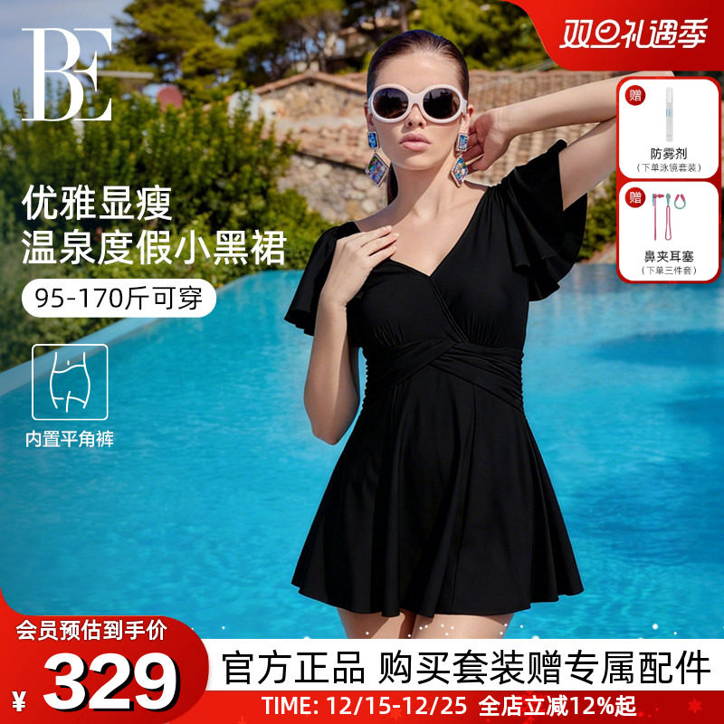BE范德安2025爆款小黑裙连体泳衣女赫本风高级感大码显瘦温泉度假
