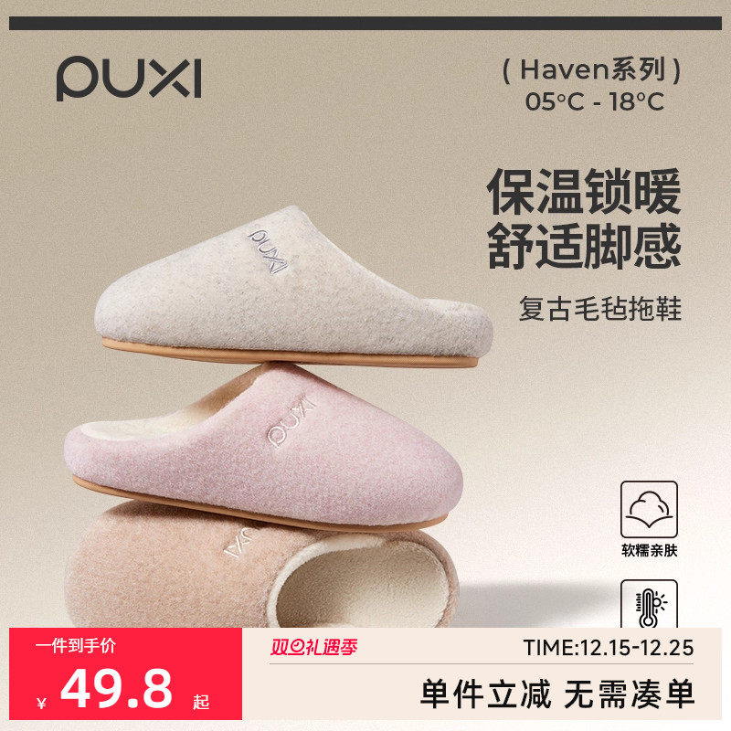 朴西苔痕加绒棉拖鞋女士冬天保暖家用防滑抗菌室内家居情侣棉拖鞋