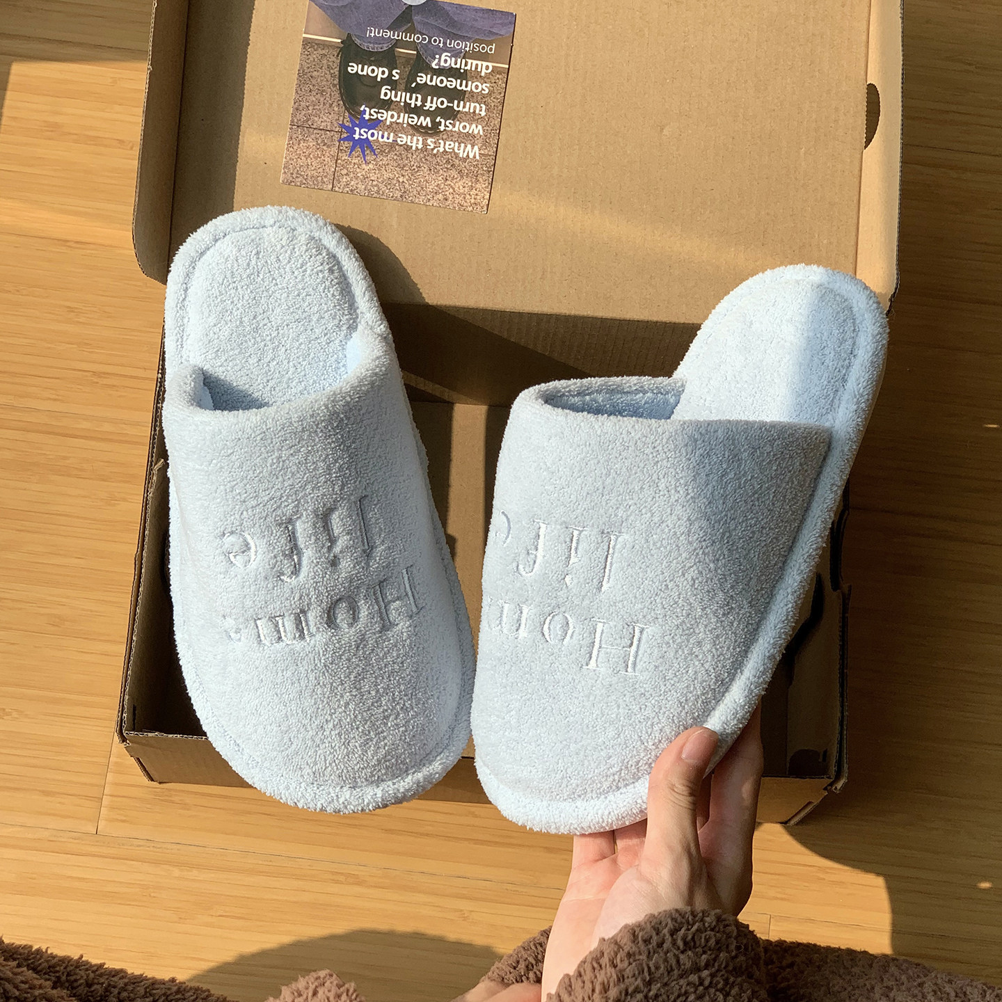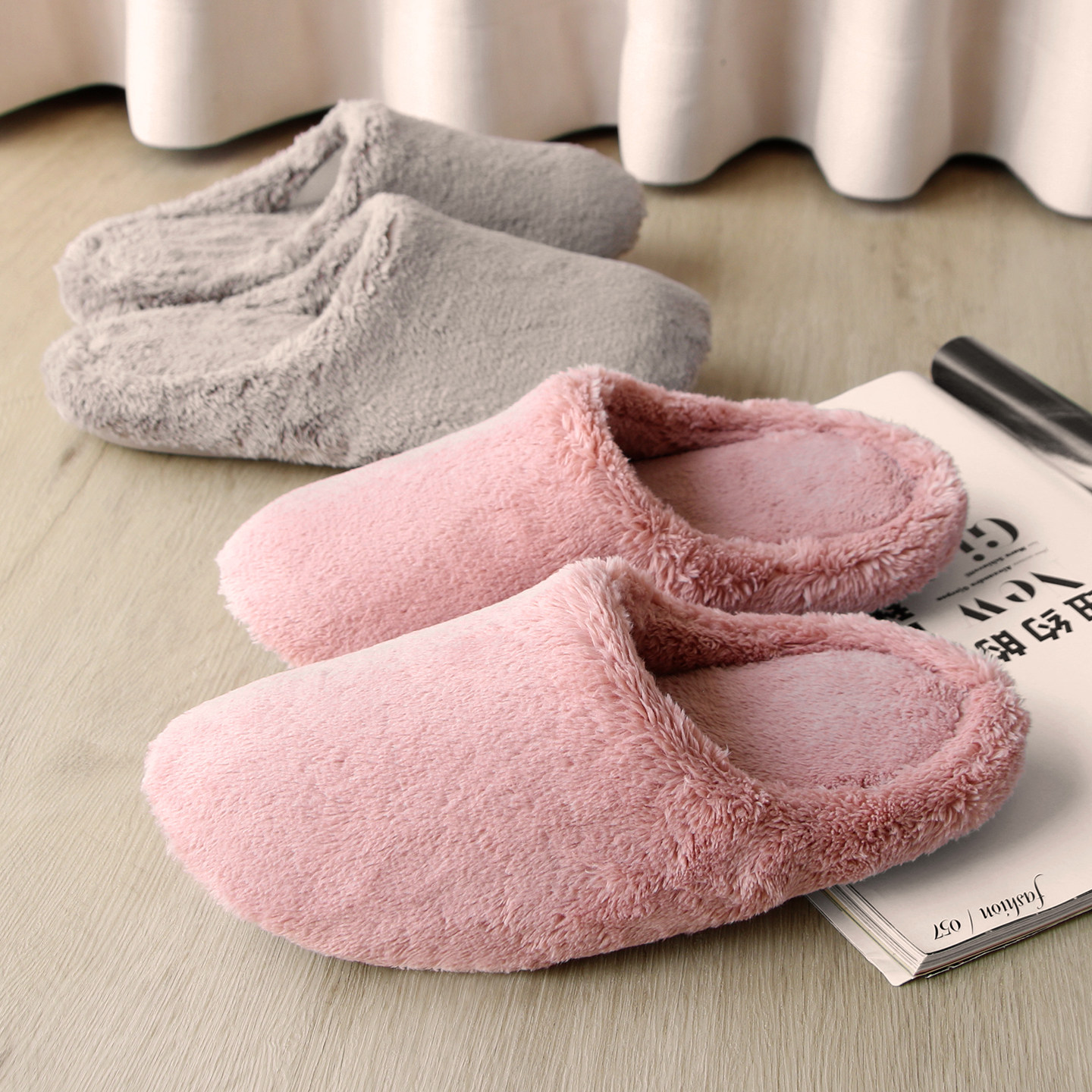 秋冬家居情侣棉拖鞋室内家用地板静音防滑男士保暖净色毛绒拖鞋女
