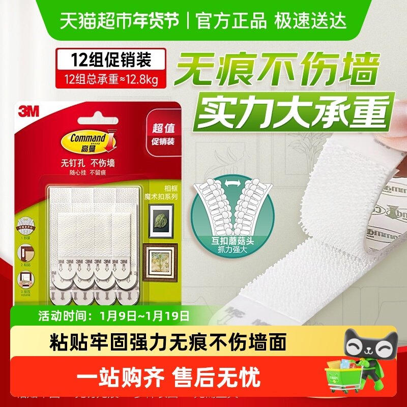 【顺丰包邮】3M魔力扣免打孔挂钩壁画相框粘钩强力魔术贴挂画神器