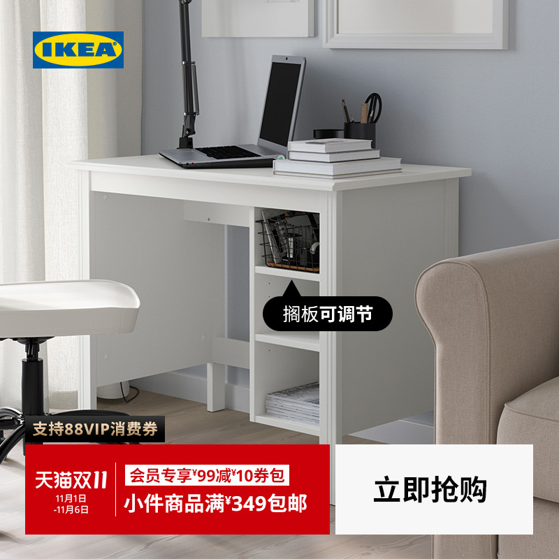 IKEA宜家BRUSALI布鲁萨里书桌90CM白色简约可收纳现代北欧风