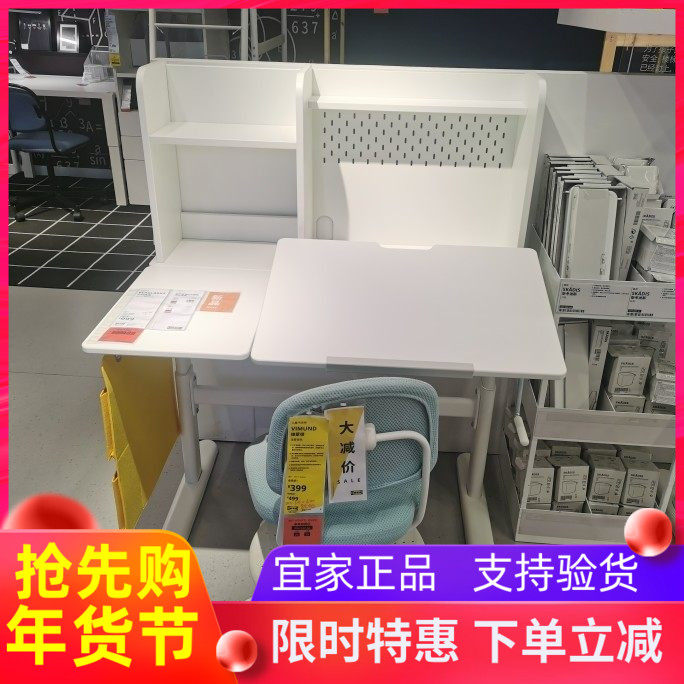 宜家国内代购贝利徕加儿童书桌学习桌写字桌调节书架桌手摇白色可