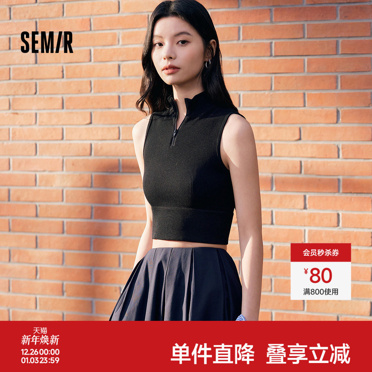森马背心女高腰修身内搭纯色半开襟高领无袖上衣春季打底衫中长款