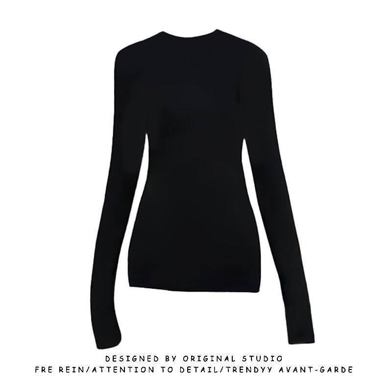 TurnSignal 潮牌中长款修身显瘦长袖T恤女2025新款针织打底衫上衣